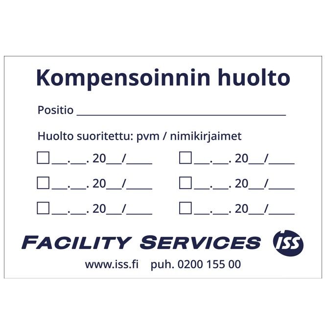 Kirjoita ensimmäinen arvio tuotteelle “KOMPENSOINNIN HUOLTO tarra 100x70mm”
